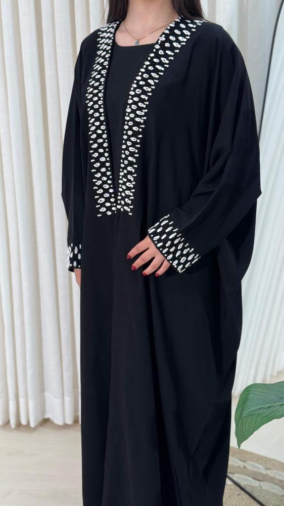 - لمسة أنثوية هادئة: اللون الأسود مع التطريز الأبيض يمنحان توازنًا بين البساطة والفخامة.